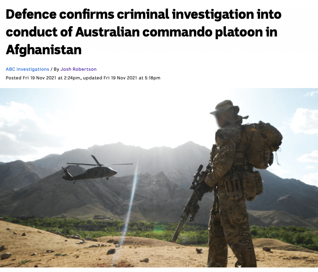 Over a year ago, on 20 October 2020, the ABC published an article based on the account of a US Marine who alleged that November Platoon of the 2nd Commando Regiment had executed a “prisoner” in Afghanistan in “mid-2012”.