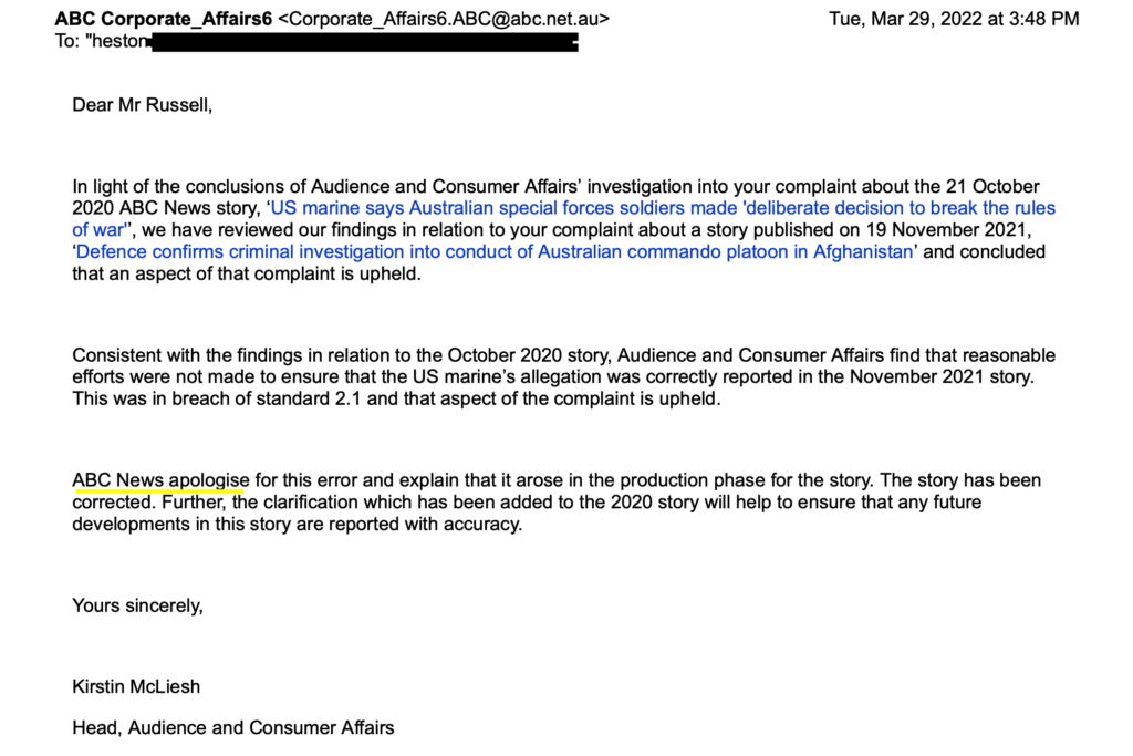 Heston. We are appalled at the ABC for once again wrongly reporting so called news concerning our Australian forces, or for that matter,any other topic today.
