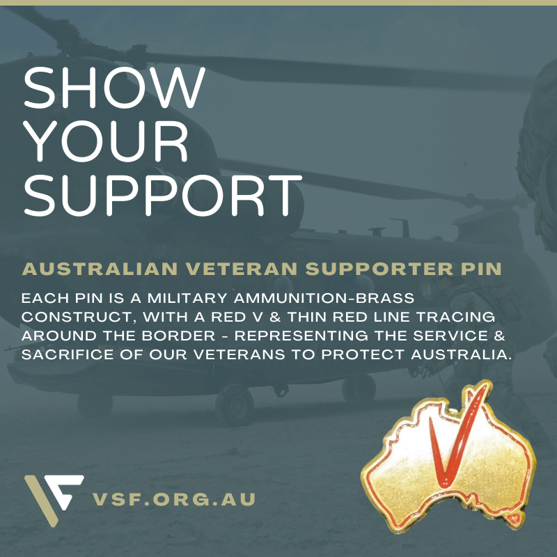 If you would like to support VSF to continue to do what is needed, while showing your support to Veterans – Purchase your Australian Veteran Support Pin Today – CLICK HERE